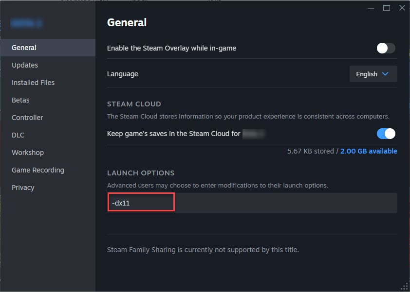 - Select GENERAL and uncheck the box Enable the Steam Overlay while in-game.