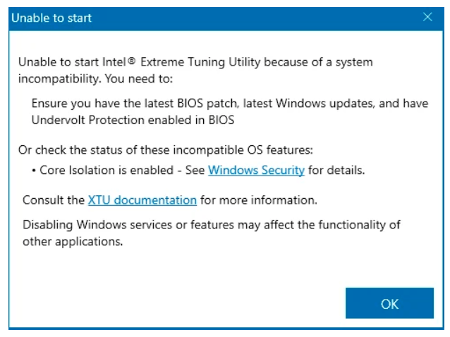 “Unable to start Intel(R) Extreme Tuning Utility because of a system incompatibility.”