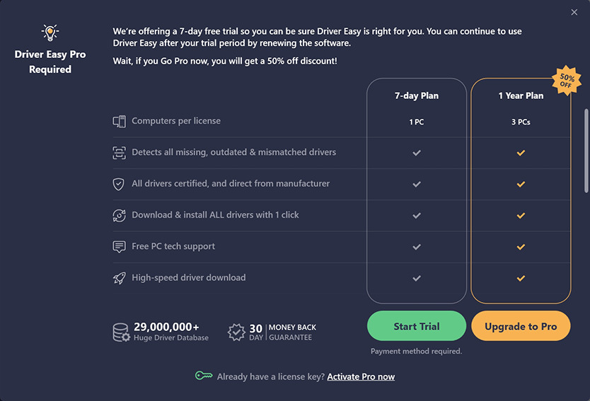 Click Start 7-day Trial to try Driver Easy Pro for free.