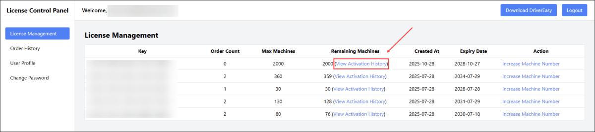 The Driver Easy Pro users need to order a new license key to activate more machines.