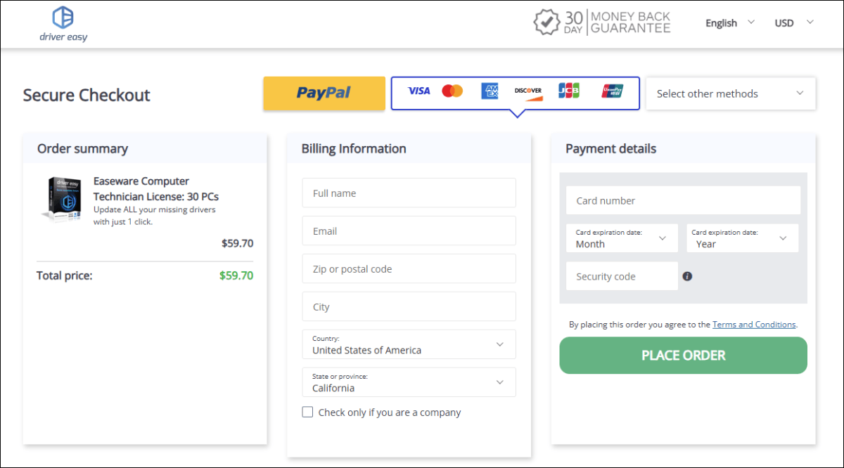 Driver Easy will automatically renew your license if you enable auto-renewal. You will receive an email from 2CheckOut subscription billing before 30 days / 7 days / 1 day of expiration. And 2Checkout, as the authorized reseller of Easeware Technology Limited online products and services, will automatically attempt to charge you one day before the license expires and renew the subscription for you.