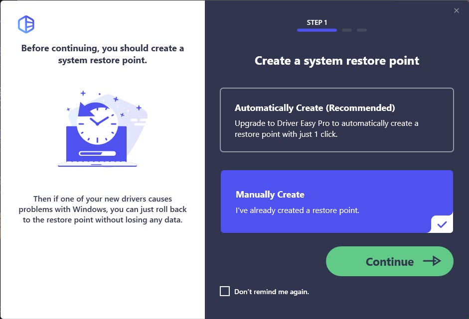 If you use the Free version of Driver Easy, you’ll need to create your restore points manually.