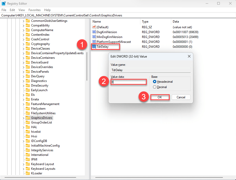 The TDR (Timeout Detection and Recovery) feature in Windows determines how long the system waits before resetting a non-responsive graphics card. By default, this timeout is just 2 seconds, which is too short for some workloads or unstable GPUs. Increasing this value can give your GPU more time to recover, potentially preventing driver timeout errors.