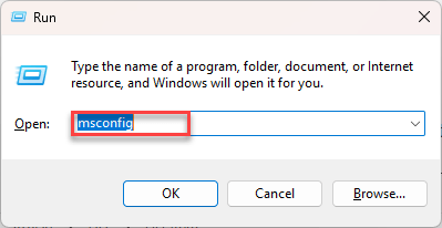 - On your keyboard, press the Windows logo key + R, type msconfig, and hit Enter.