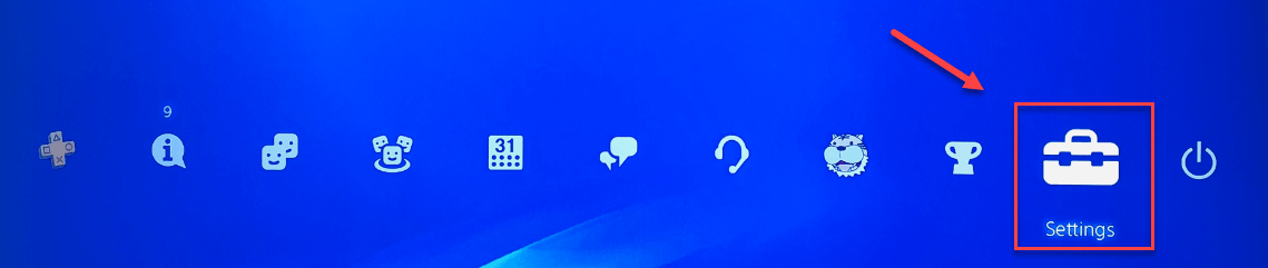 - On the home screen of your PS4 system, press the up button on your controller to go to the function area.