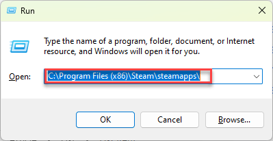 - Paste C:\Program Files (x86)\Steam\steamapps\common on the address bar.