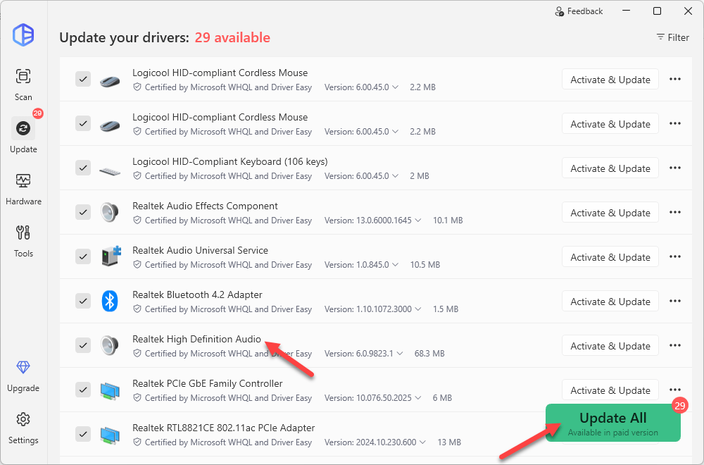 If you want to update Astro drivers to fix some audio issues, you can either update related drivers automatically, or you can go to Device Manager to update/uninstall them one by one.
