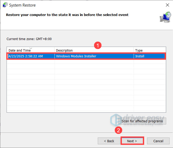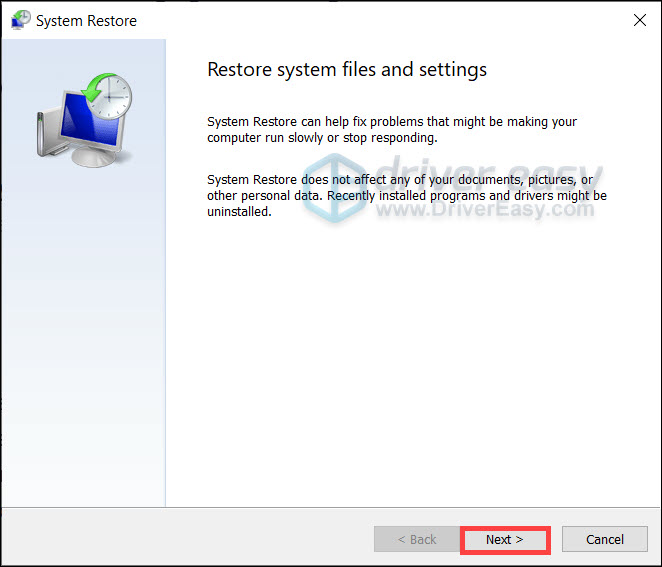 - Select a restore point and click Next. (If you can’t find any restore points, simply jump to the next fix.)