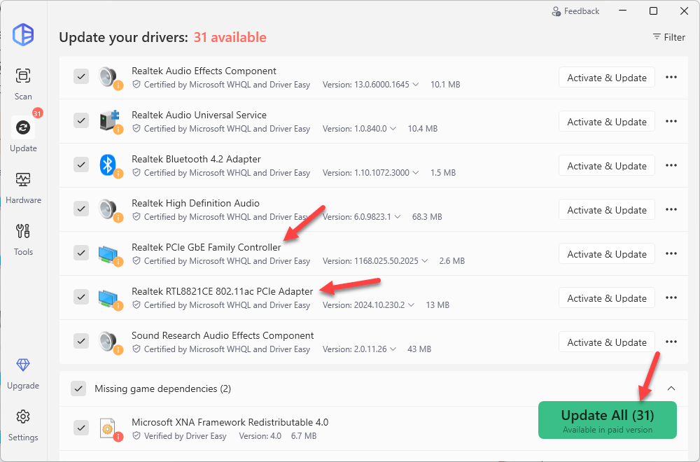 3) Click Update All. Driver Easy will then download and update all your outdated and missing device drivers, giving you the latest version of each, direct from the device manufacturer.