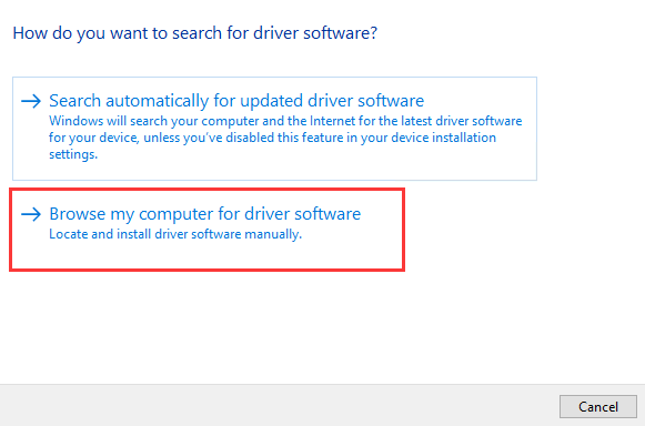 - Select Browse my computer for driver software.