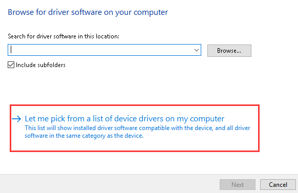 - Select Let me pick from a list of device drivers on my computer.