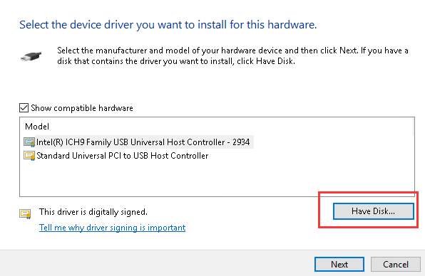 - Click the Have Disk… button.