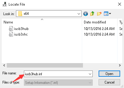 - Select the .inf file then follow the on-screen instructions to install the driver.