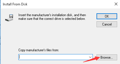 - Click the Browse… button to navigate to the folder where you saved the unzipped downloaded driver file.