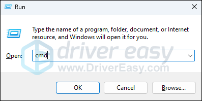 - On your keyboard, press the Windows logo key and R at the same time to open the Run dialog. Type cmd and press Ctrl, Shift and Enter at the same time to run Command Prompt as administrator.