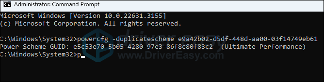 powercfg -duplicatescheme e9a42b02-d5df-448d-aa00-03f14749eb61and hit Enter: