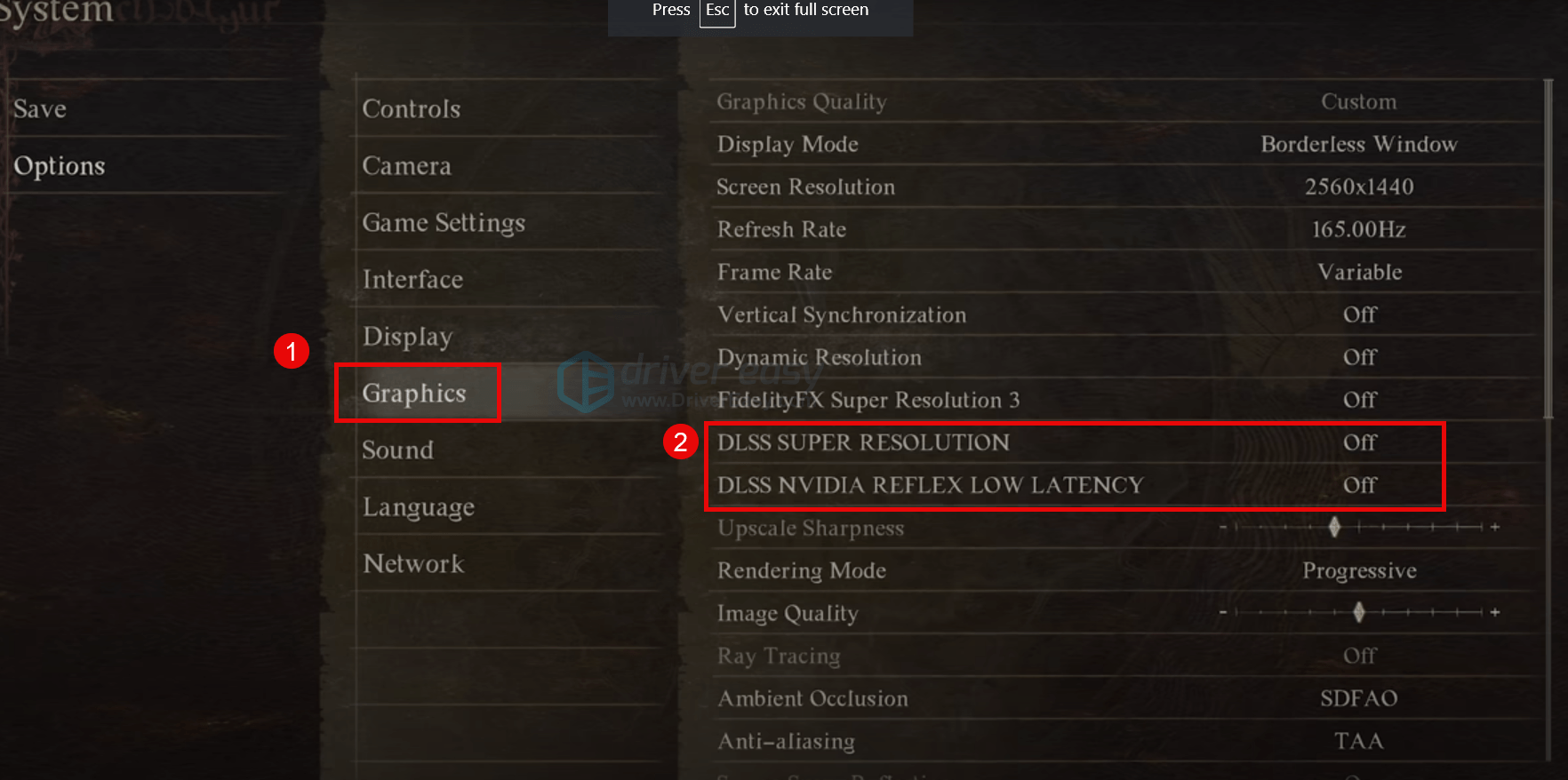 To see if this is the culprit to your Dragon’s Dogma 2 low FPS and stutters issue, especially when you’re using Nvidia graphics cards, you can try the following to turn off DLSS in the game:
