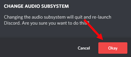 - When a prompt message appears, click Okay. Then your Discord app will be relaunched.