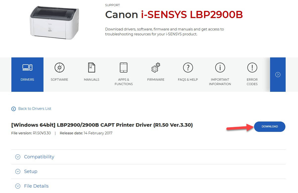 - Go to the Canon website and download the latest driver for the LBP2900B printer (you can follow the steps in Method 3).