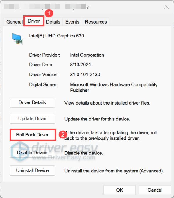 Tips: If Marvel Rivals continues to crash after attempting the previous fixes, consider updating to the latest graphics driver. While rolling back to the previous driver version may help you mitigate the issues introduced by recent updates, it’s not a permanent solution. Manufacturers regularly release driver updates to fix known issues, enhance performance, and improve compatibility with new games and applications. With a Driver Easy trial or subscription, you can update your drivers effortlessly.