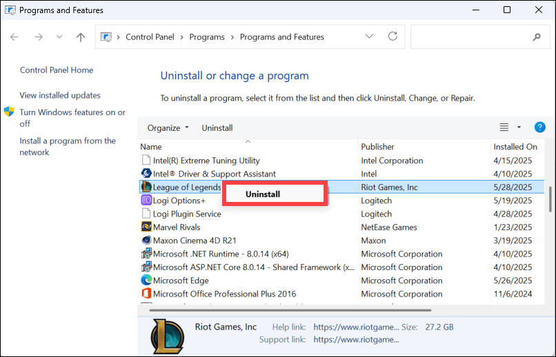 - Right-click on the program that’s giving you the error and click Uninstall.