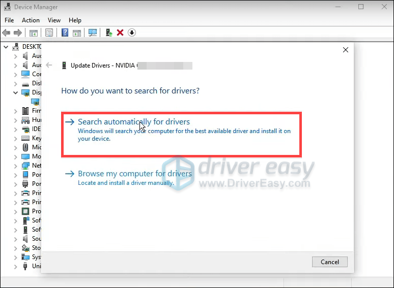 - Select Search automatically for updated drivers software. Then follow the on-screen instructions to finish the process.