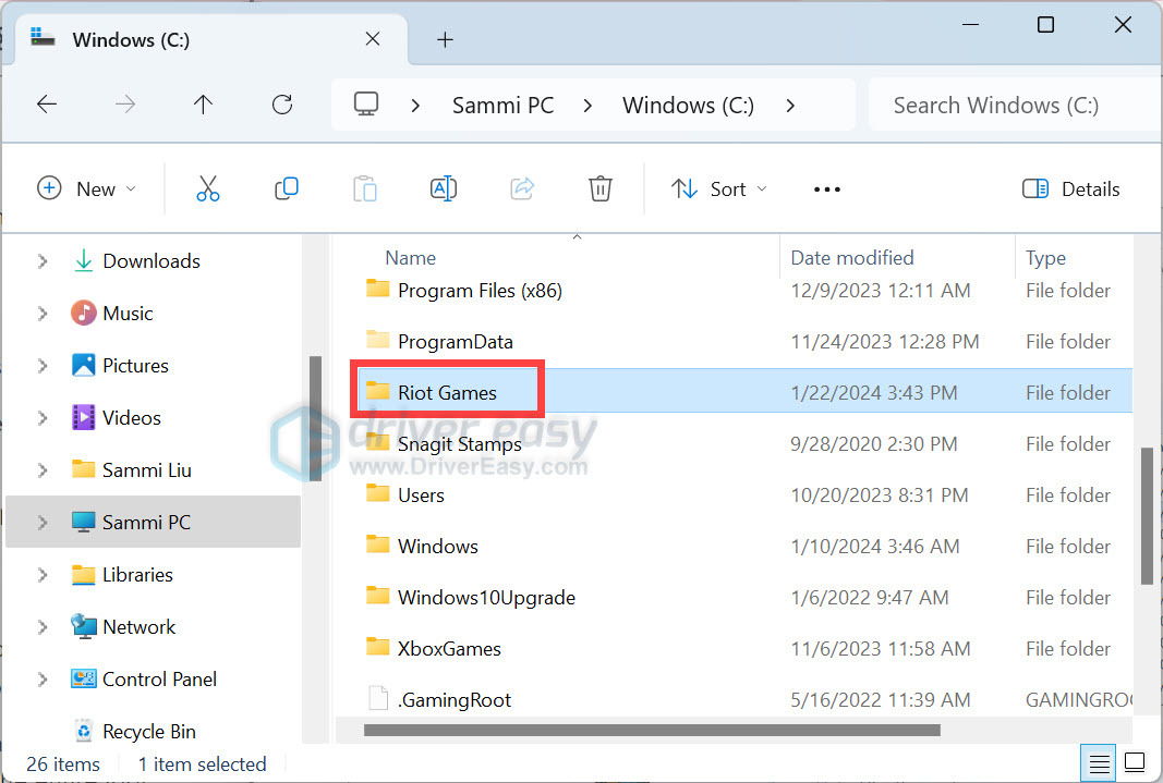 - Go to your Riot Games folder and delete it. The default location is C:\Riot Games. After deletion, go to the recycle bin and empty it.