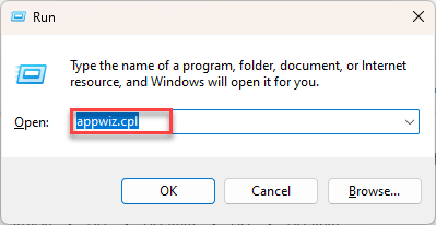 - On your keyboard, press the Windows logo key and R at the same time, then type appwiz.cpl and press Enter.