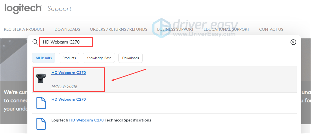 2) Enter the device model (HD Webcam C270) in the search box, and press Enter.