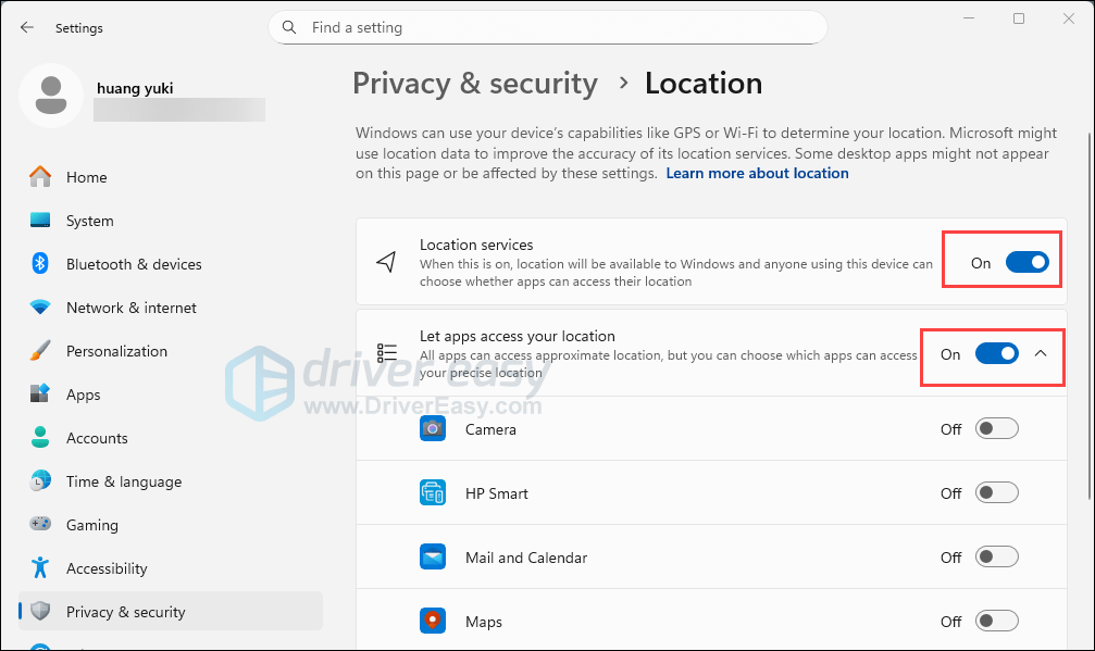 - Make sure the Location for this device is On. If not, you can click the Change button to turn it on. Also, make sure that Allow apps to access your location is set to On.