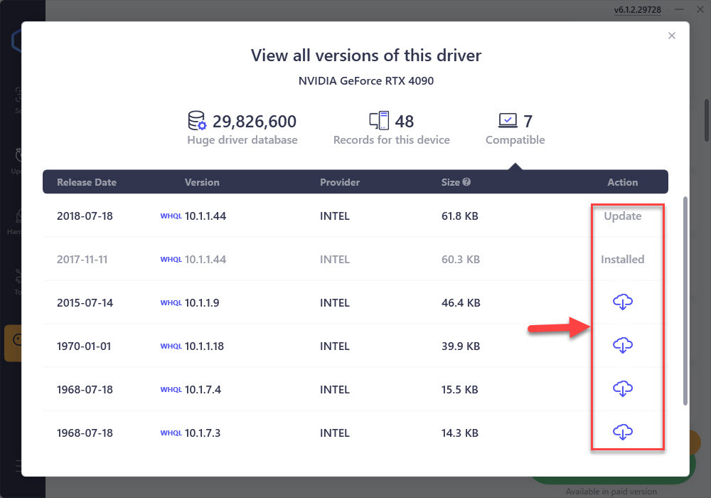 Driver Easy’s View all driver versions feature allows you to view the entire driver history for your RTX 4090. This gives you the flexibility to choose the most stable version. If the current driver isn’t performing as expected, you can easily roll back and manually install an older version from the list.