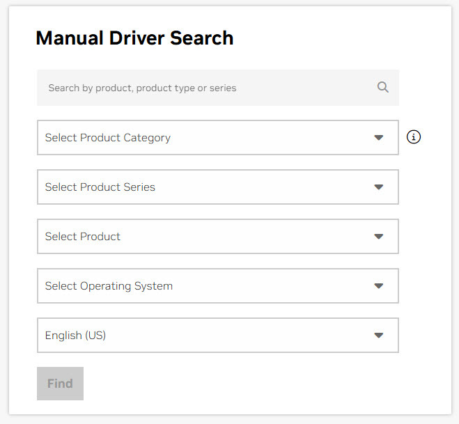 - In Manual Driver Search, choose the right category for your RTX 4090 graphics card and click Find.