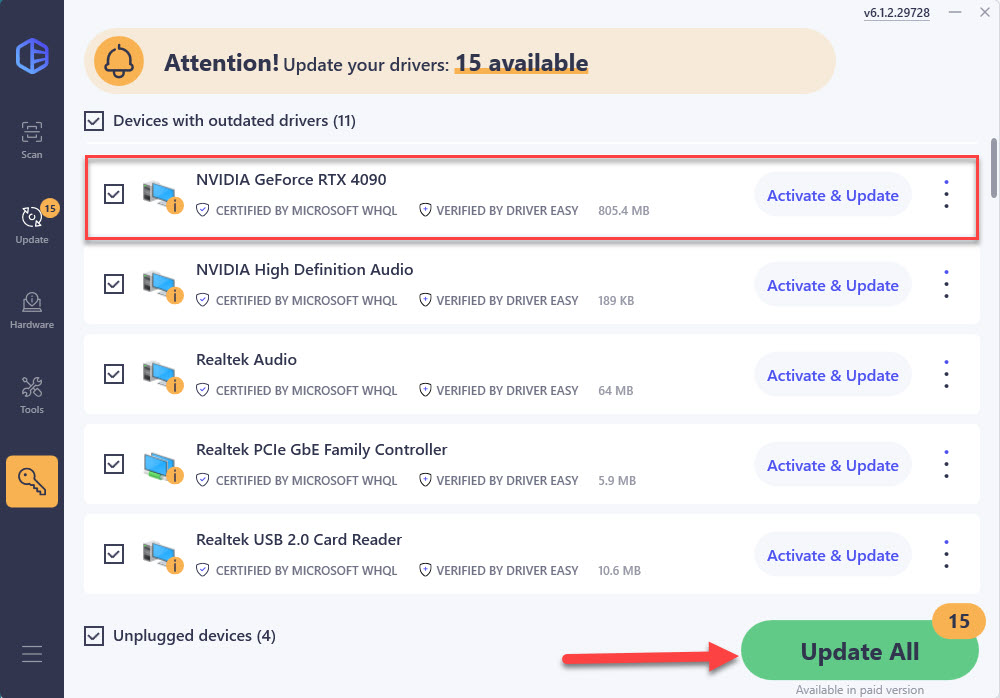 Method 1: Update your RTX 4090 driver automatically (Recommended)