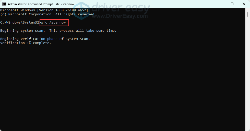 - Type sfc /scannow and press Enter.