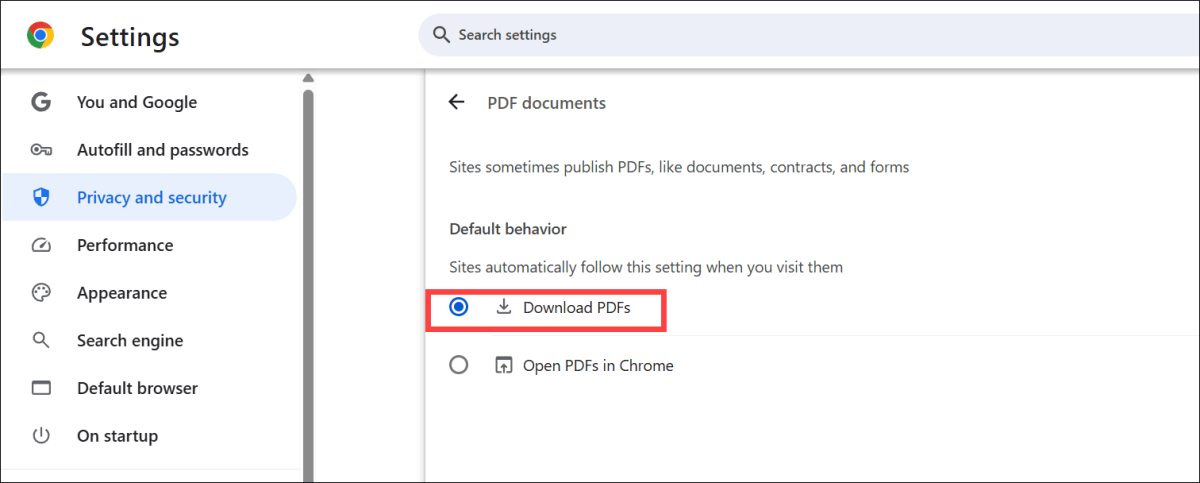 Option 2 – Disable Chrome PDF viewer from Content Settings