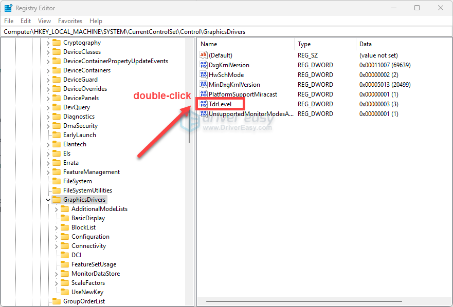 Important: If this does not resolve the issue, or if your system becomes unstable, you must revert this change immediately. Simply return to the GraphicsDrivers key, double-click the TdrLevel value, and change the data back to its original value (often it’s blank or doesn’t exist by default). If you created the value new, you can simply right-click it and select Delete.