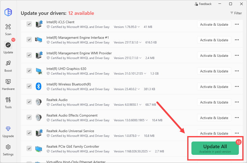 (This requires the Pro version which comes with full support and a 30-day money-back guarantee. You’ll be prompted to upgrade when you click Update All. If you’re not ready to buy the Pro version, Driver Easy offers a 7-day free trial which includes access to all the Pro features such as high-speed download and one-click install. You won’t be charged anything until your 7-day trial has ended.)