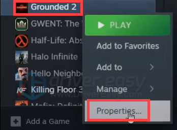 - Right-click on your game and select Properties.