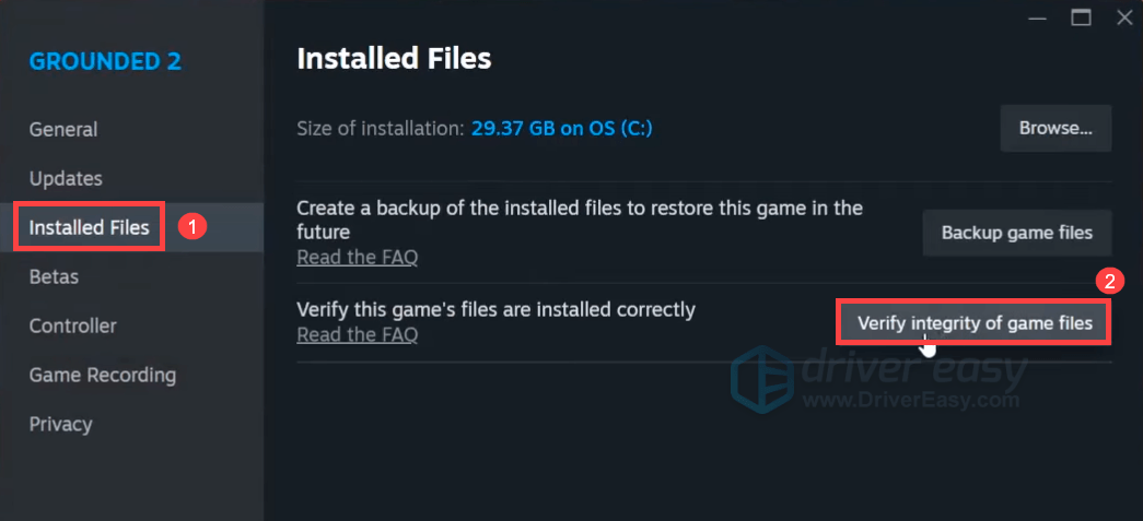 - Go to the Installed Files tab and click Verify integrity of game files….