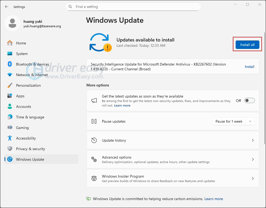- If it finds any, click Install all to continue. Reboot your computer once it finishes.