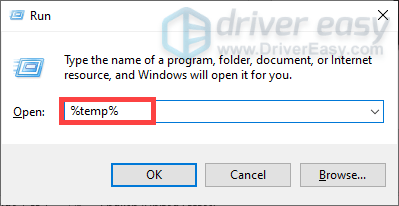 - Press the Windows logo key and R together on your keyboard and type %temp% in the box.