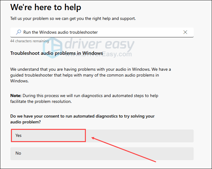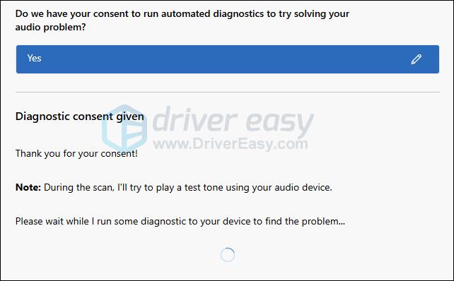 - A new page pops up, and click Yes to give your consent to run automated diagnostics.