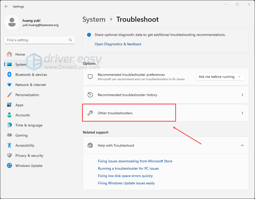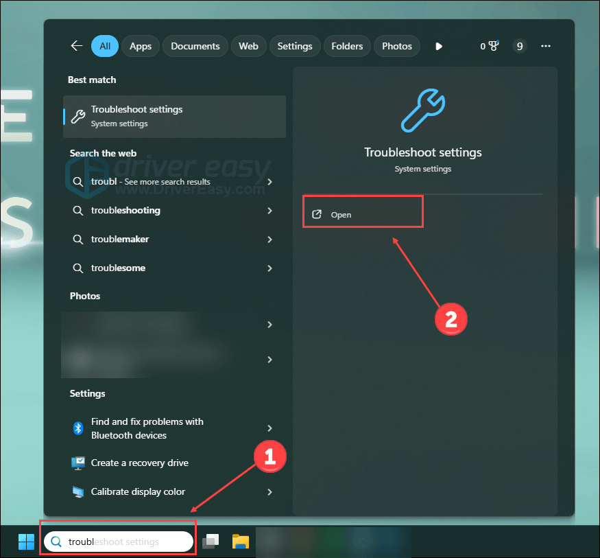 - Type troubleshoot in the Windows search bar and open Troubleshoot settings.