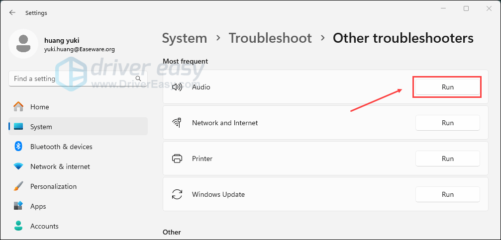 Automatic driver update – If you don’t have the time, patience, or computer skills to update your driver manually, you can, instead, do it automatically with Driver Easy. Driver Easy will automatically recognize your system and find the correct driver for your exact audio card, then it will download and install it correctly: