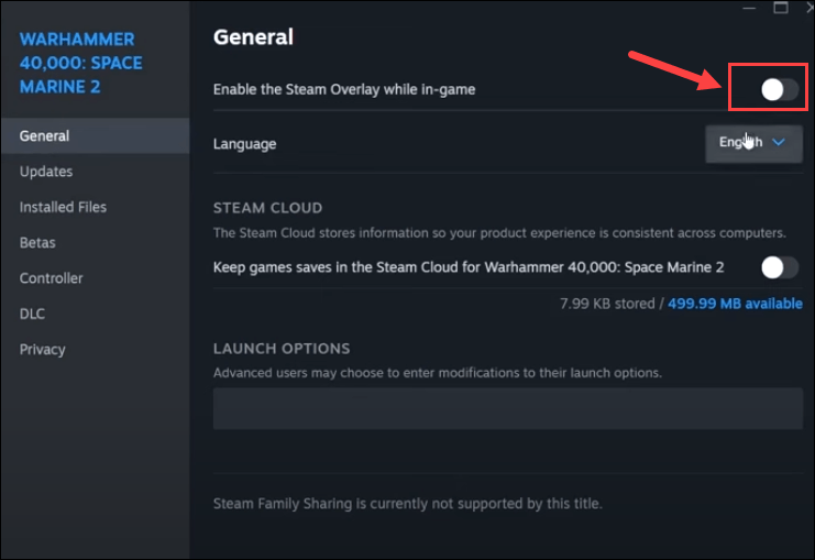 - Scroll to toggle off In-Game Overlay.