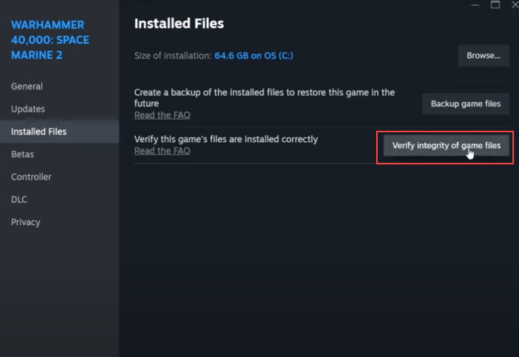 Corrupted or damaged game files could also be the culprit in the game crashing problem in Warhammer 40K: Space Marine 2. To see if this is your case, you can verify the game files in this way: