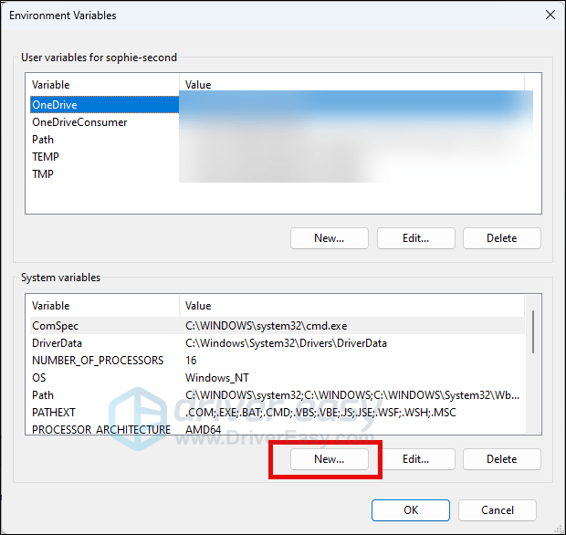 2. Add a new system variable (if you have an Intel 10th gen CPU or newer)