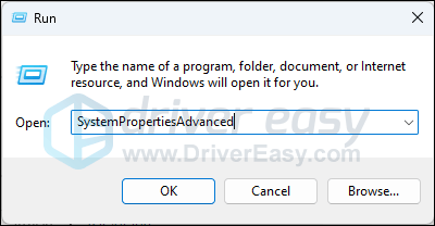 - Copy and paste SystemPropertiesAdvanced and hit Enter.