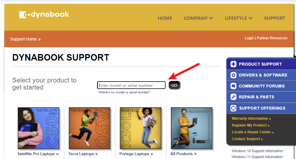 - Enter the model or serial number for your Toshiba (Dynabook) Satellite.