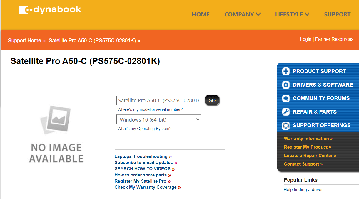 - Go to Toshiba (Dynabook) Satellite Support page.